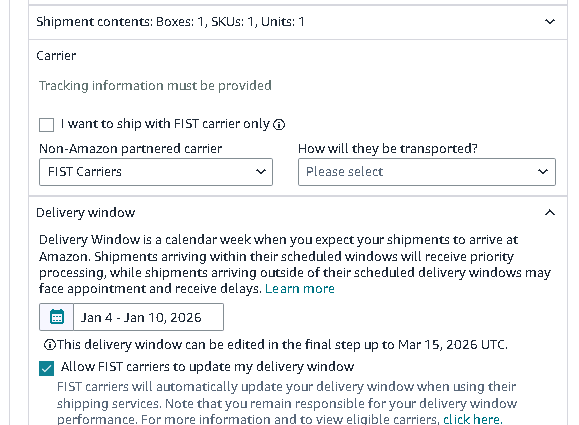 是否有允许“FIST承运商更新我的送货时间”的API