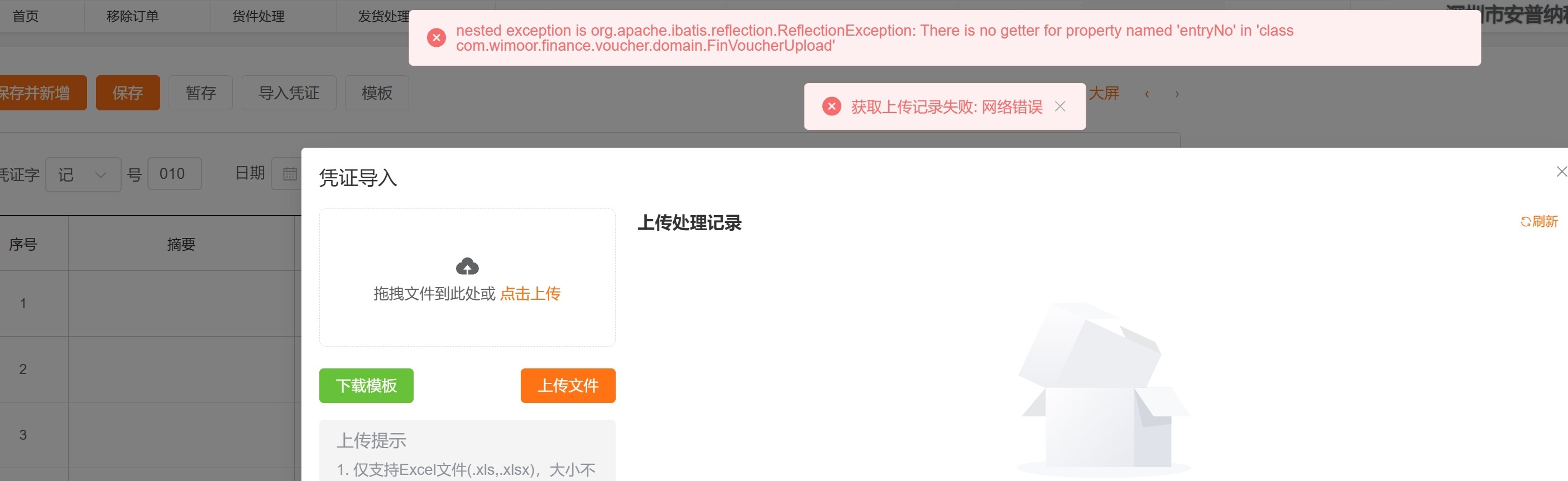 导入凭证, 弹出报错